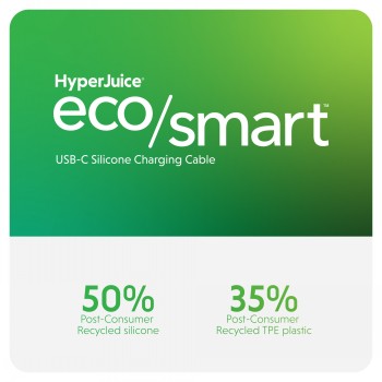 Kaapeli on yhteensopiva yli 1000 USB-C-laitteen kanssa – yhdellä kaapelilla lataat kannettavat, tabletit, puhelimet ja kuulokkeet merkistä riippumatta. Kaapelin ulkokuori sisältää 50 % kierrätettyä (Post-Consumer Recycled) silikonia ja liitinpäiden muoviosat 35 % kierrätettyä TPE-muovia.