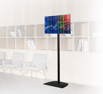 BT8570 is a stylish display stand designed for use with a small flat screen. The base features non-marking rubber feet, grab handles for easy handling, and a cover plate to hide the handles. Suitable for screens with VESA 50, 75 or 100 fixings, the screen can be easily mounted at any height on the 1.6 metre pole. Accessories such as shelves can also be added using a Ø50mm collar.